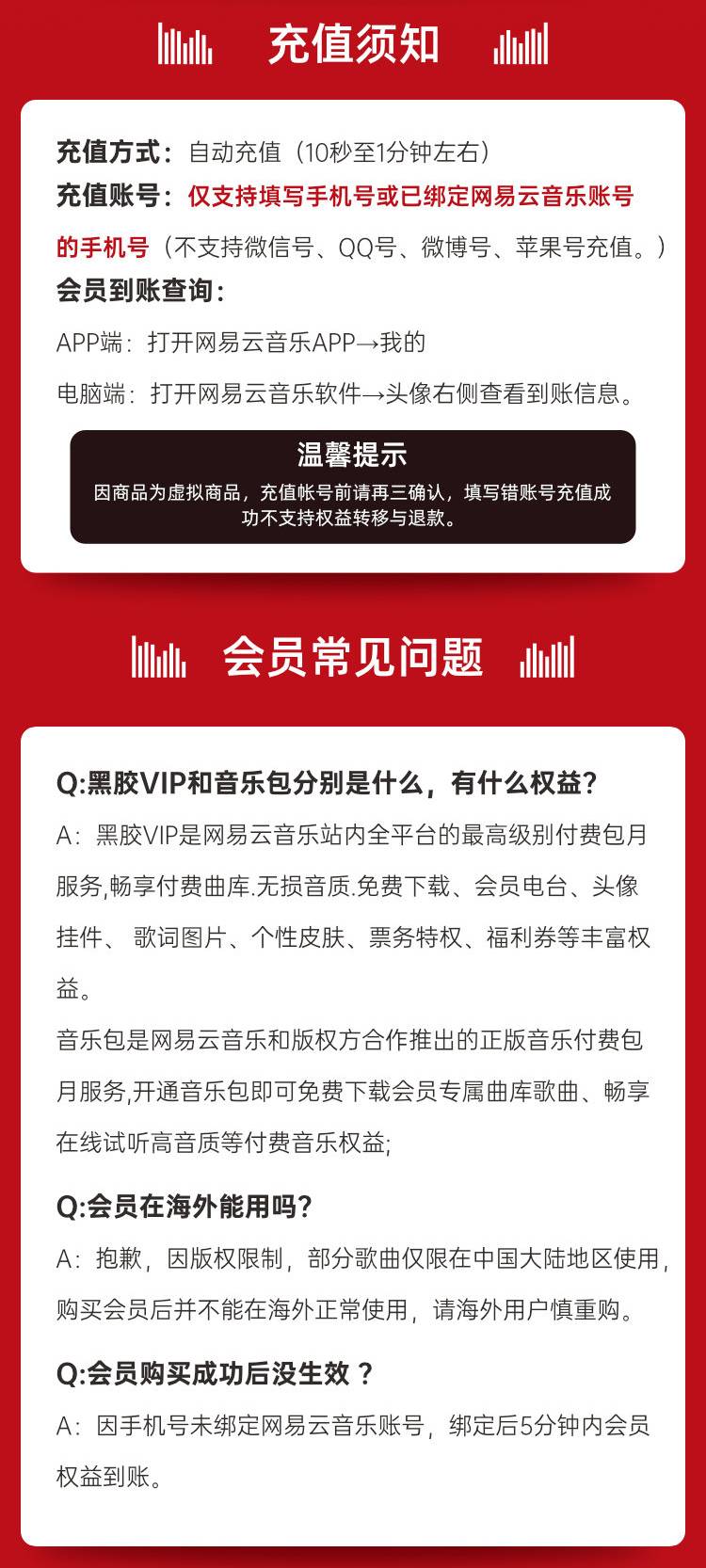下单请在买家留言填写下单网易云手机号即可自动充值!